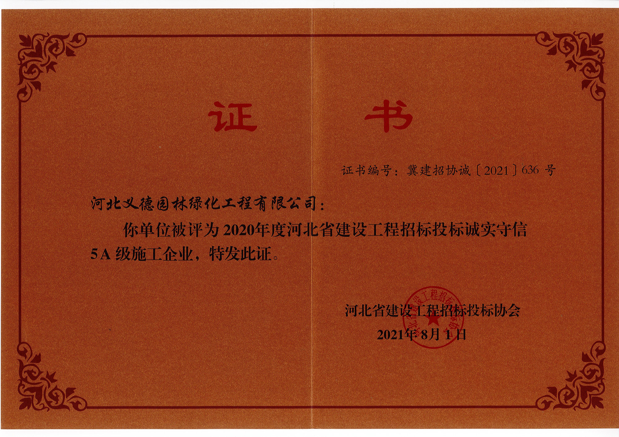 近幾年來我公司被授予2019年-2022年河北省扶貧龍頭企業、2018年國家林業標準化示范企業、2019年度全國苗圃50強、2018-2019年度河北省林業重點龍頭企業、2018年保定市精品特色現代農業園區、2018年度保定林木種苗協會授予特色苗圃、2018年度北方十佳特色苗圃、2016-2019年河北省建設工程招標投標誠實守信5A級施工企業等榮譽稱號,2017年保定市林木種苗龍頭企業、石家莊市2017年度優秀園林企業。
